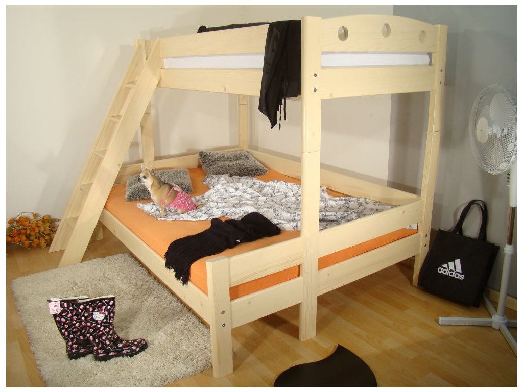 Bezpečná a pevná patrová postel z masivu FIJA BIG s rozšířeným spodním lůžkem pro maximální pohodlí kvalitní české výroby. Horní lůžko palandy má rozměr 90 x 200 cm. Spodní rozšířené lůžko můžete zvolit v rozměru 120 x 200 nebo 140 x 200 cm.