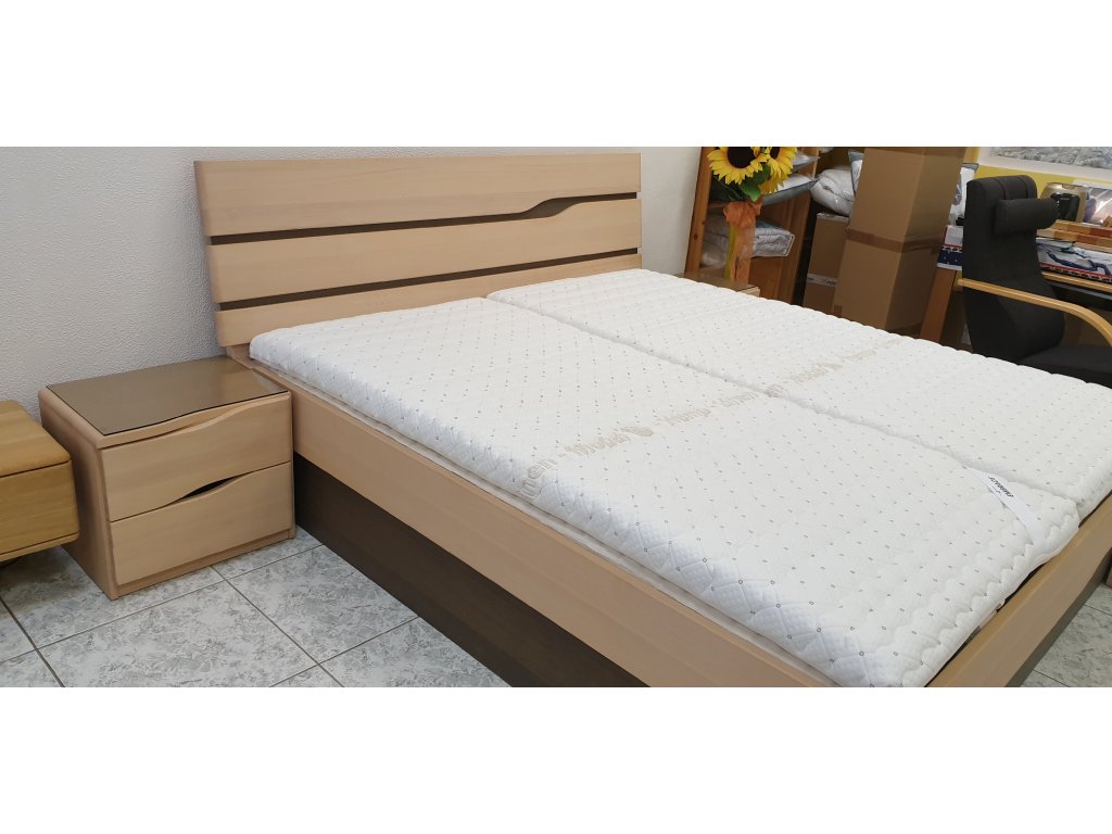 Postel 180x200, noční stolky s ochranným sklem. Úložný prostor pod celým prostorem lůžka samostatně montovaný. Vše v jednoduché montáži.