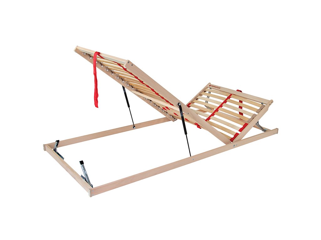 Kvalitní lamelový rošt za dobrou cenu - to je Primaflex HP P. Rošt s vyklápěním nožní části pomocí pístu vám zajistí jednoduchý přístup do celého úložného prostoru pod lůžkem. Zároveň lze rošt napolohovat v oblasti hlavy i nohou pro pohodlí a relax na lůžku. Zdvih pomocí textilního úchytu usnadní každodenní manipulaci. Pružné lamely uložené ve dvojicích v kaučukových pouzdrech tvoří 3 anatomické zóny. Středový popruh zlepšuje stabilitu roštu. Posuvnými objímkami lze nastavit individuální tuhost v bederní části.