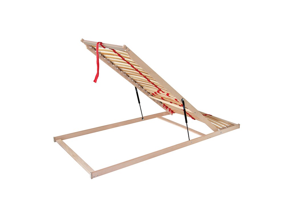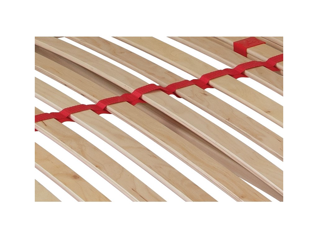 Zdvih pomocí textilního úchytu usnadní každodenní manipulaci. Pružné lamely uložené ve dvojicích v kaučukových pouzdrech tvoří 3 anatomické zóny. Středový popruh zlepšuje stabilitu roštu. Posuvnými objímkami lze nastavit individuální tuhost v bederní části. Ukončení bočnic je chráněno plastovými krytkami.