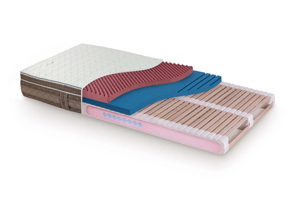 Matraci je nutné položit na laťové rošty včetně polohovacích nebo pevnou desku. Není vhodná na pružný podklad jako jsou např. lamelové rošty.